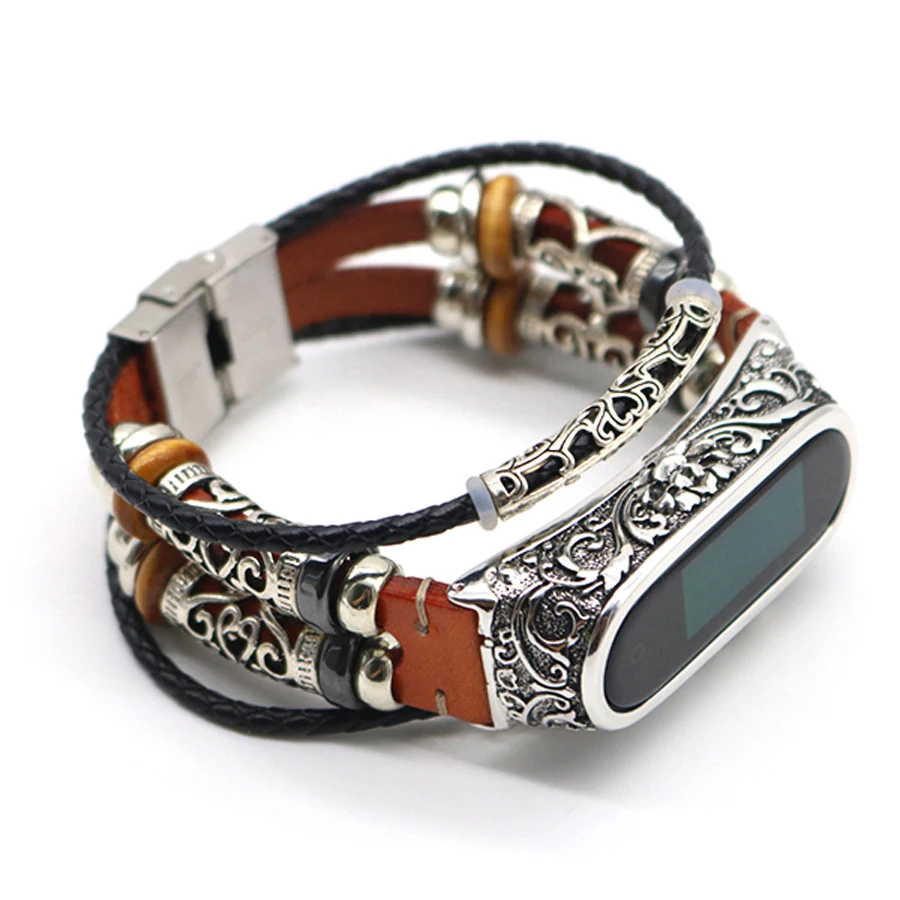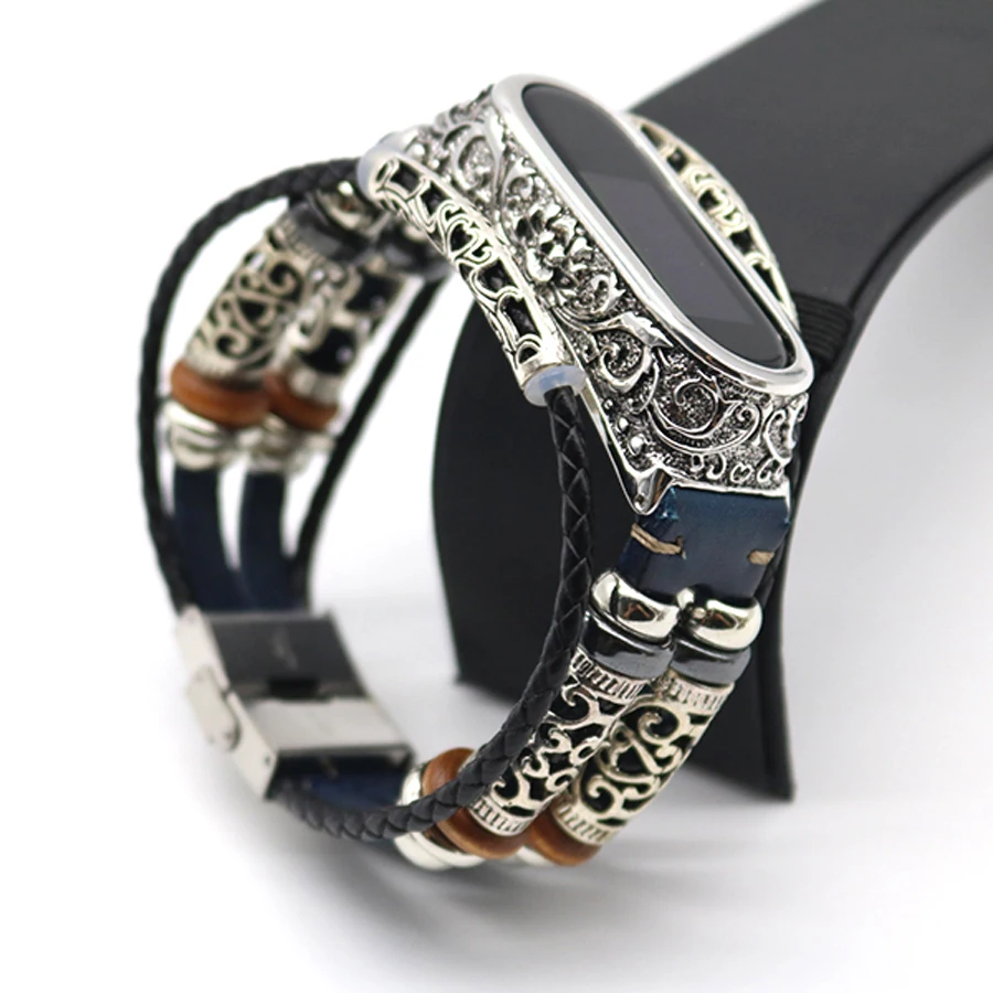 For Xiaomi Band Bracelet Leather Watch Strap Braided Replacement Vintage Watch Band For Xiaomi Band Smart Accessories