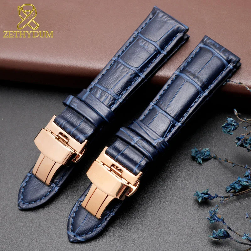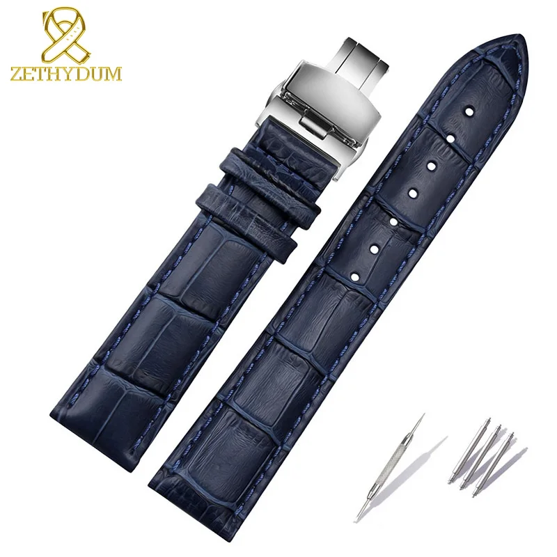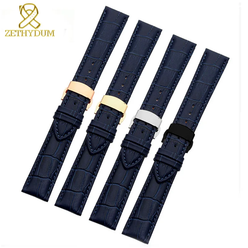 Discount Price Genuine Leather Bracelet Dark Blue Color Watch Strap Butterfly Clasp Watchband Sized with FREE Worldwide Shipping!