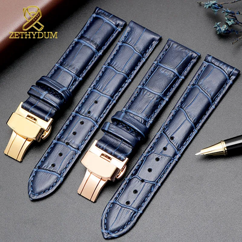 Genuine Leather Bracelet 19Mm 20Mm 22M Watchband Mens Wristwatches Band Accessories Watch Belt Fold Buckle Leather Watch Strap