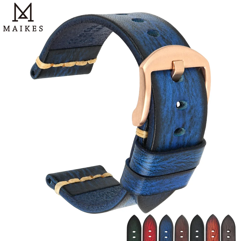 Maikes High Quality Vintage Green Leather Stainless Steel Pin Buckle 20Mm 22Mm 24Mm Watch Accessories Watch Strap Bracelets