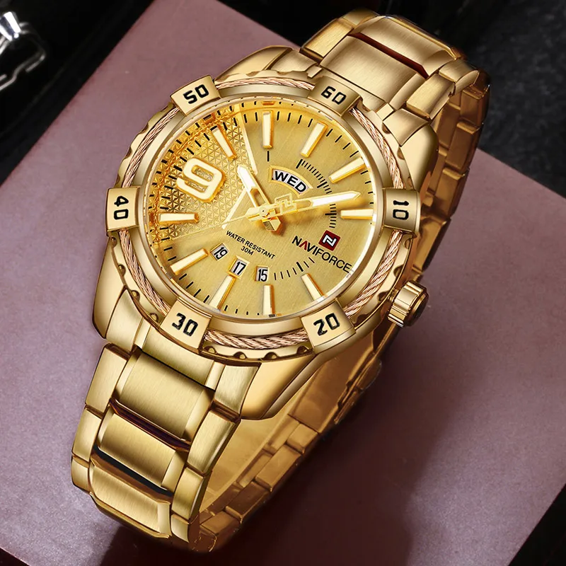 Naviforce Watches Sport Waterproof Stainless Steel Fashion Luxury Gold Watch Date Clock Quartz Wristwatch Relogio Masculino