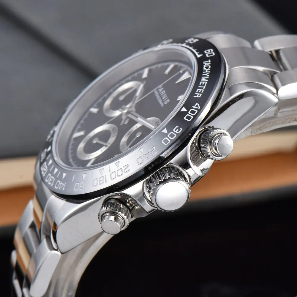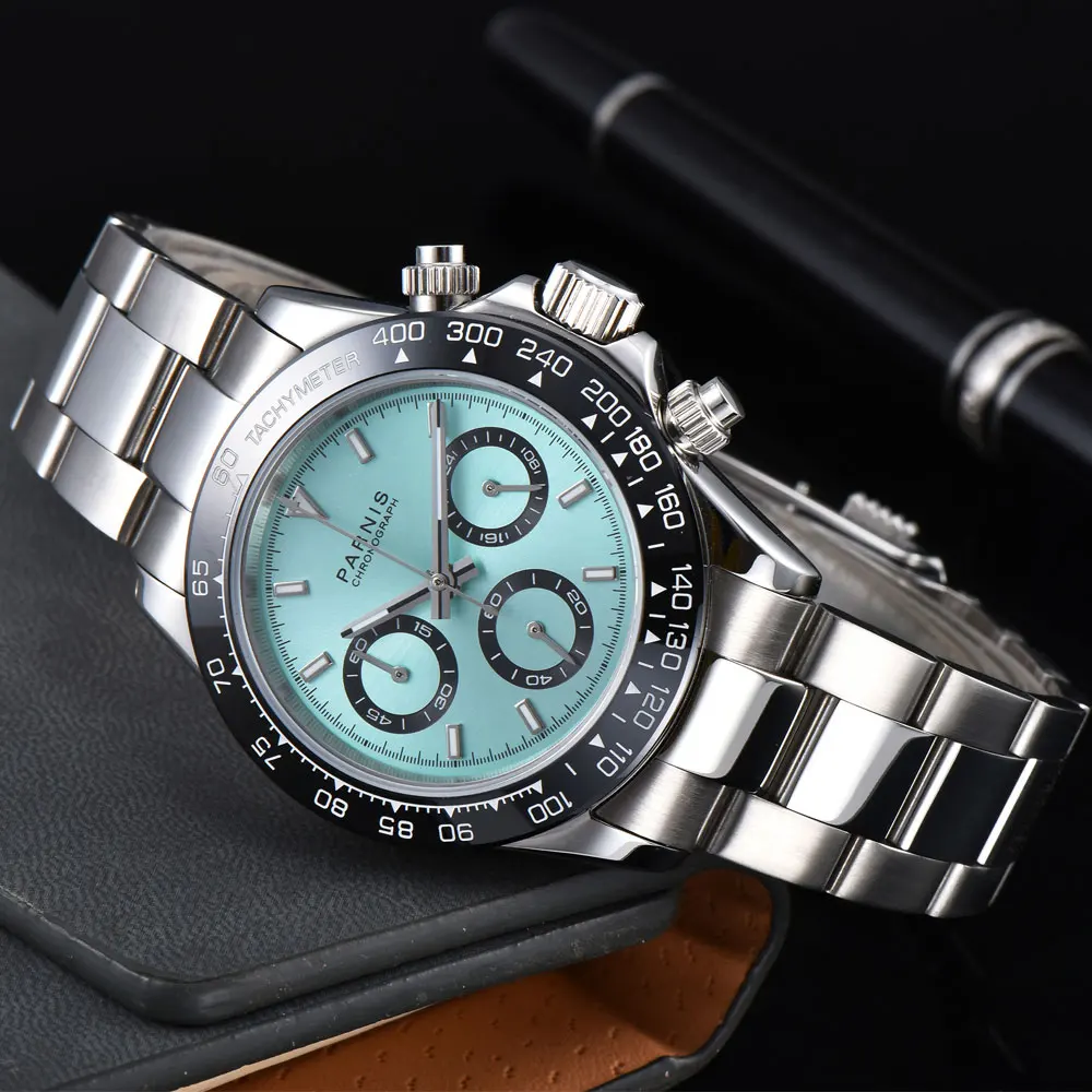 Parnis39Mm Mens Chronograph Watch Sapphire Crystal Quartz Casual Wristwatchsports Wat Sports Watch