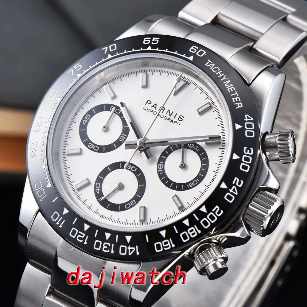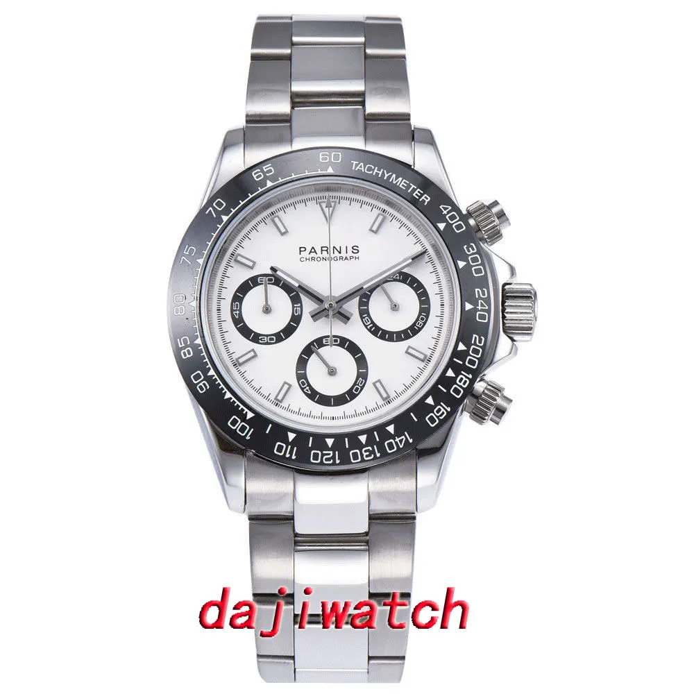 Cheap Offer 39Mm Parnis White Dial Sapphire Crystal Solid Full Chronograph Quartz Mens Watch with FREE Worldwide Shipping!