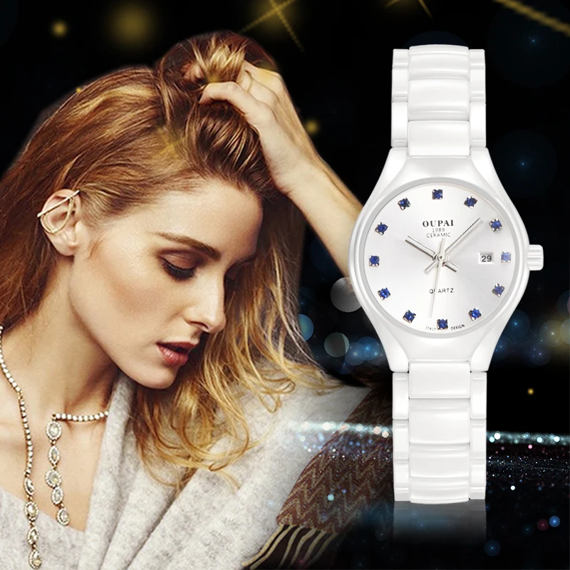 Cheap Offer Ceramic Watch Fashion Casual Women Quartz Watches Relojes Mujer Oupai Brand Luxury Wristwatches Gir with Free Shipping Worldwide!