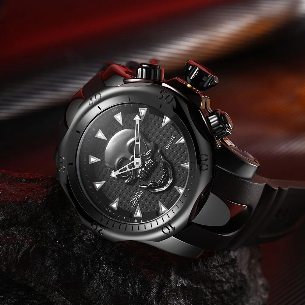 Jiangyuyan Skull Watches Men Luxury Brand Quartz Stainless Steel Watch Mens Waterproof Watches Male Gold Black Wristwatch