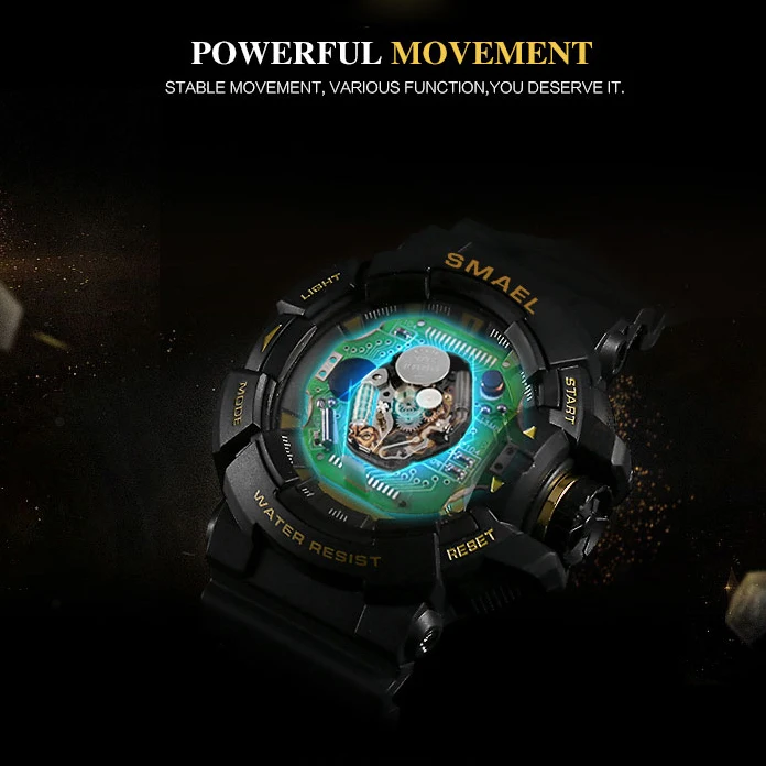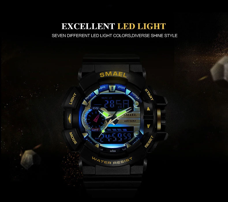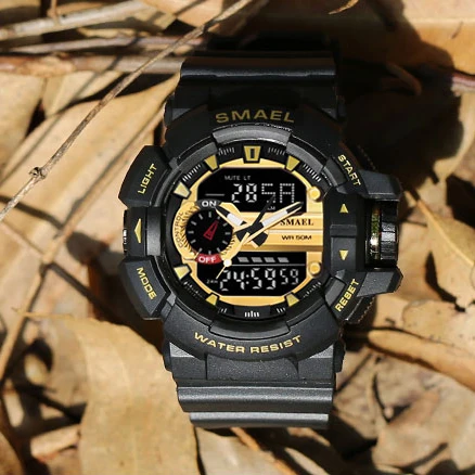 Smael Watch Men For Sports Quartz Wristwatches Digital Led Watch Alarm Gold Shock Clocks1642 Sport Watches Man Water Resistant