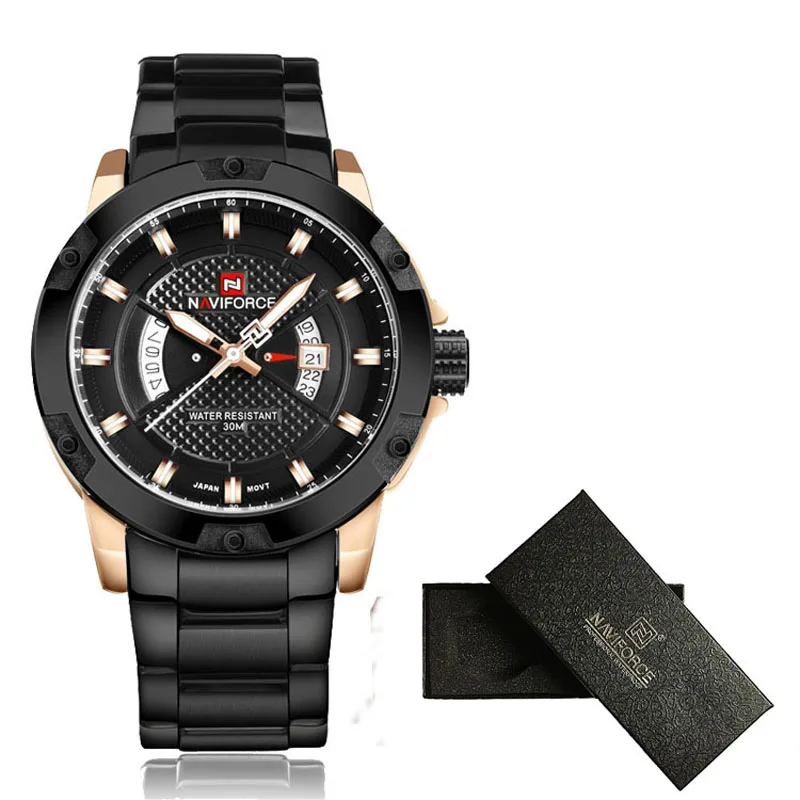 Naviforce Watch Mens Luxury Brand Quartz Watch Waterproof Sport Watches Full Steel Black Wristwatches Relogio Masculino
