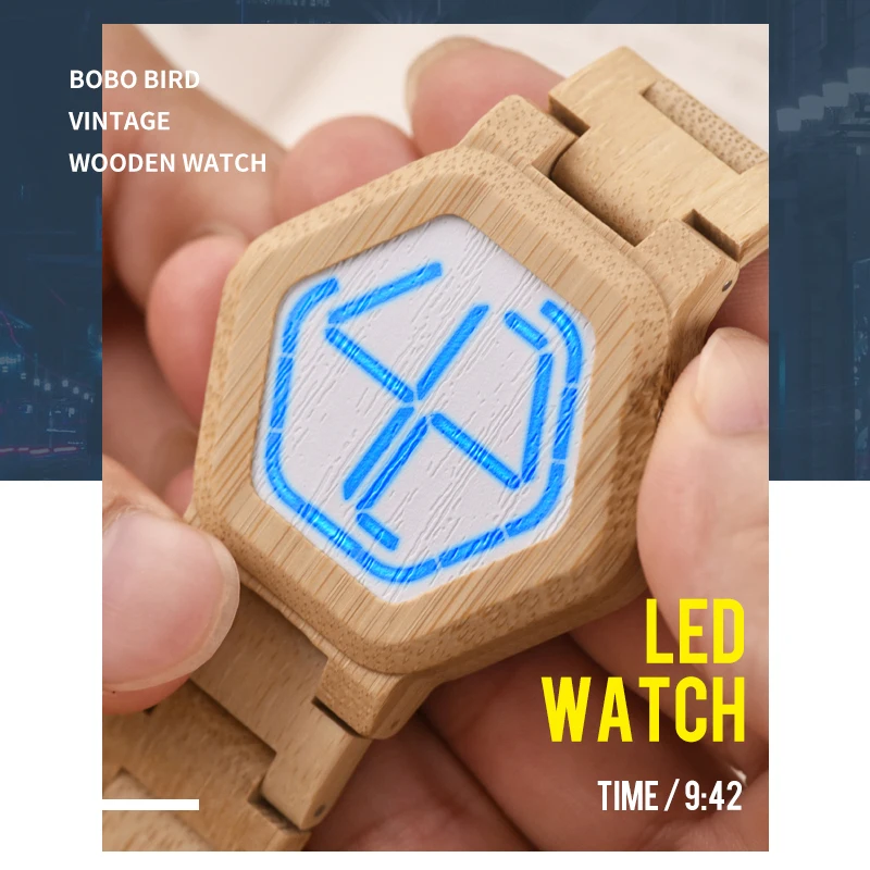 Colors Bobo Bird Unique Mens Wooden Watches Led Digital Wristwatches With Wood Link Saat Erkek Relojes Special Gift Item Cp13