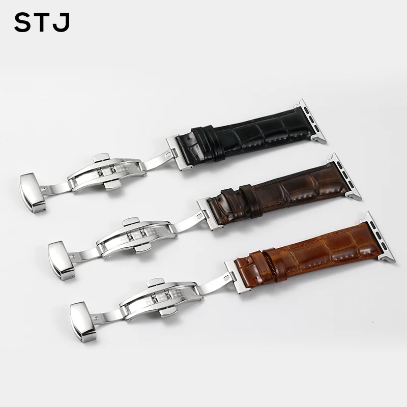 Stj Handmade Cowhide Watchband For Apple Watch Bands 42Mm 38Mm Apple Watch Series Strap For Iwatch 44Mm 40Mm Bracelet