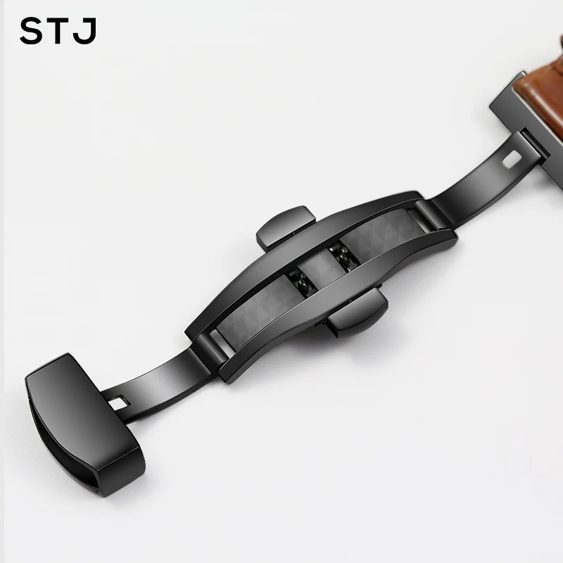 Stj Brand Calf Genuine Leather Black Watch Band Strap For Watchband Size 18Mm 19Mm 20Mm 21Mm 22Mm 24Mm Watch Wristband Bracelet