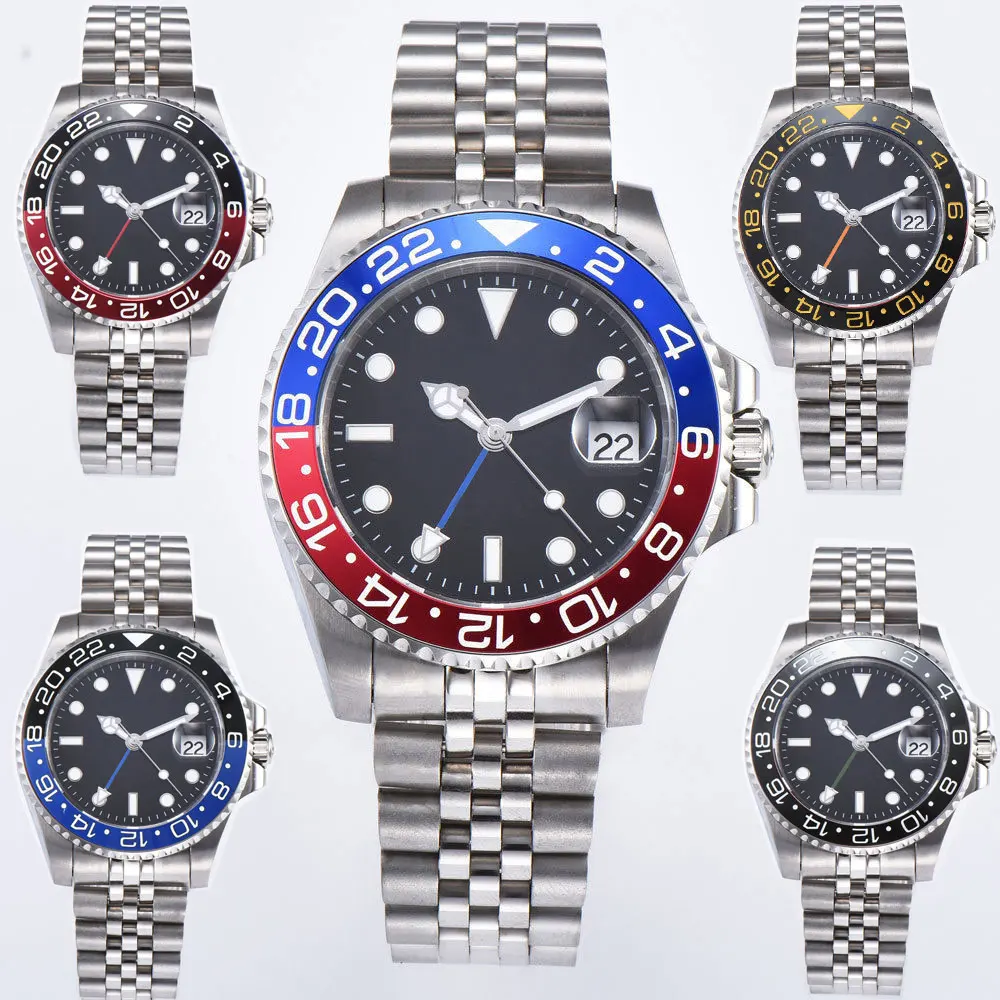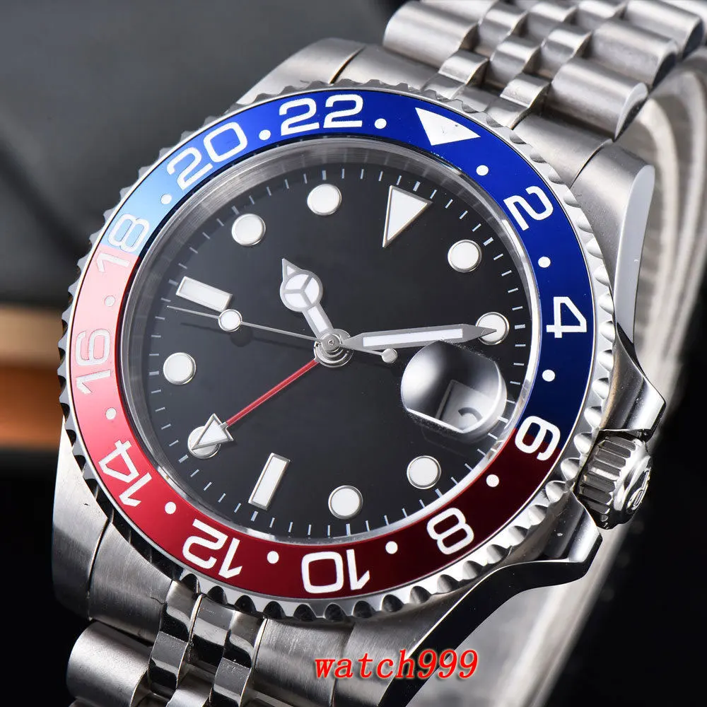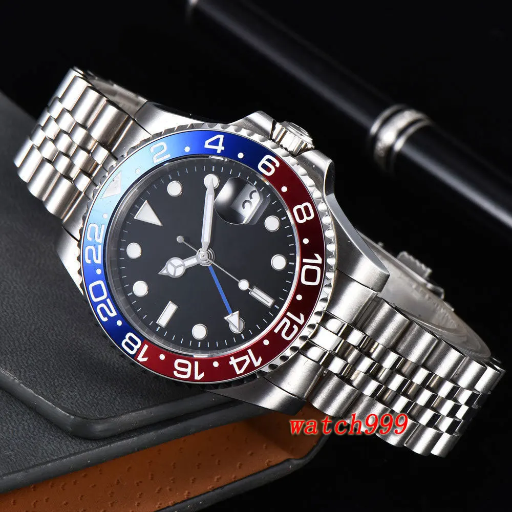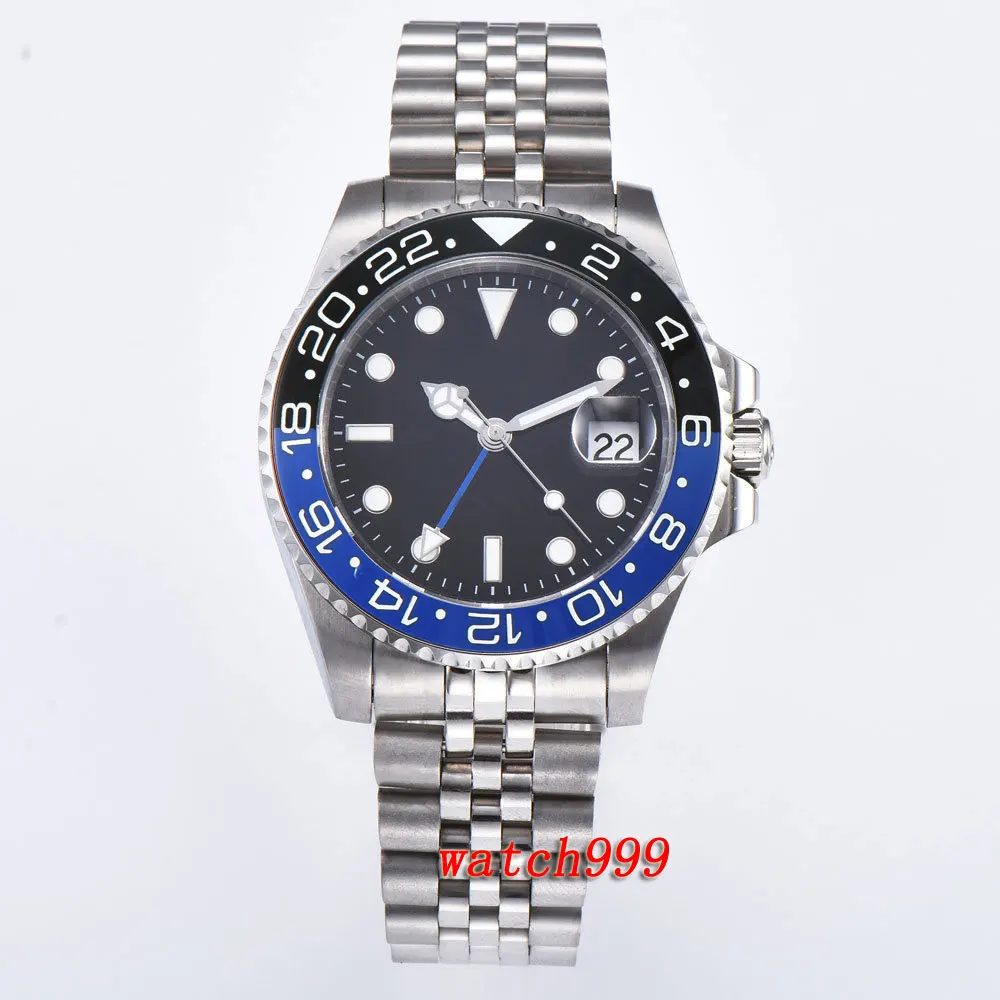 40Mm Mechanical Men Watch Titanium Bezel Gmt Luminous Sterile Black Dial Sapphire Crystal Date Day Automatic Mens Watch