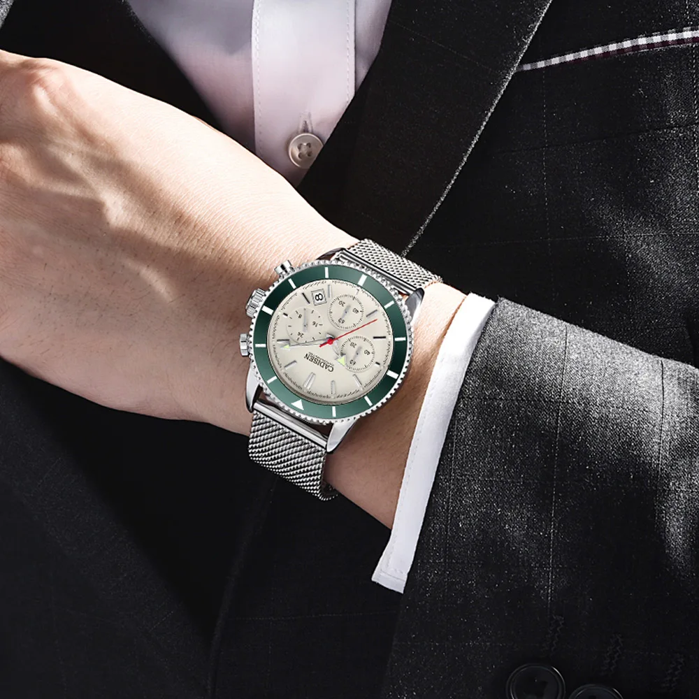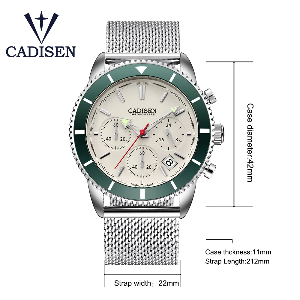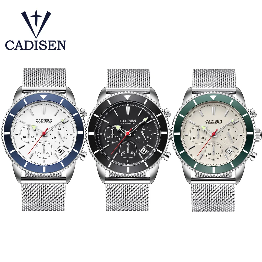 Cadisen Mens Watches Sports Watch Mens Top Luxury Quartz Military Watch Stainless Steel Net With Calendar Relogio Masculino