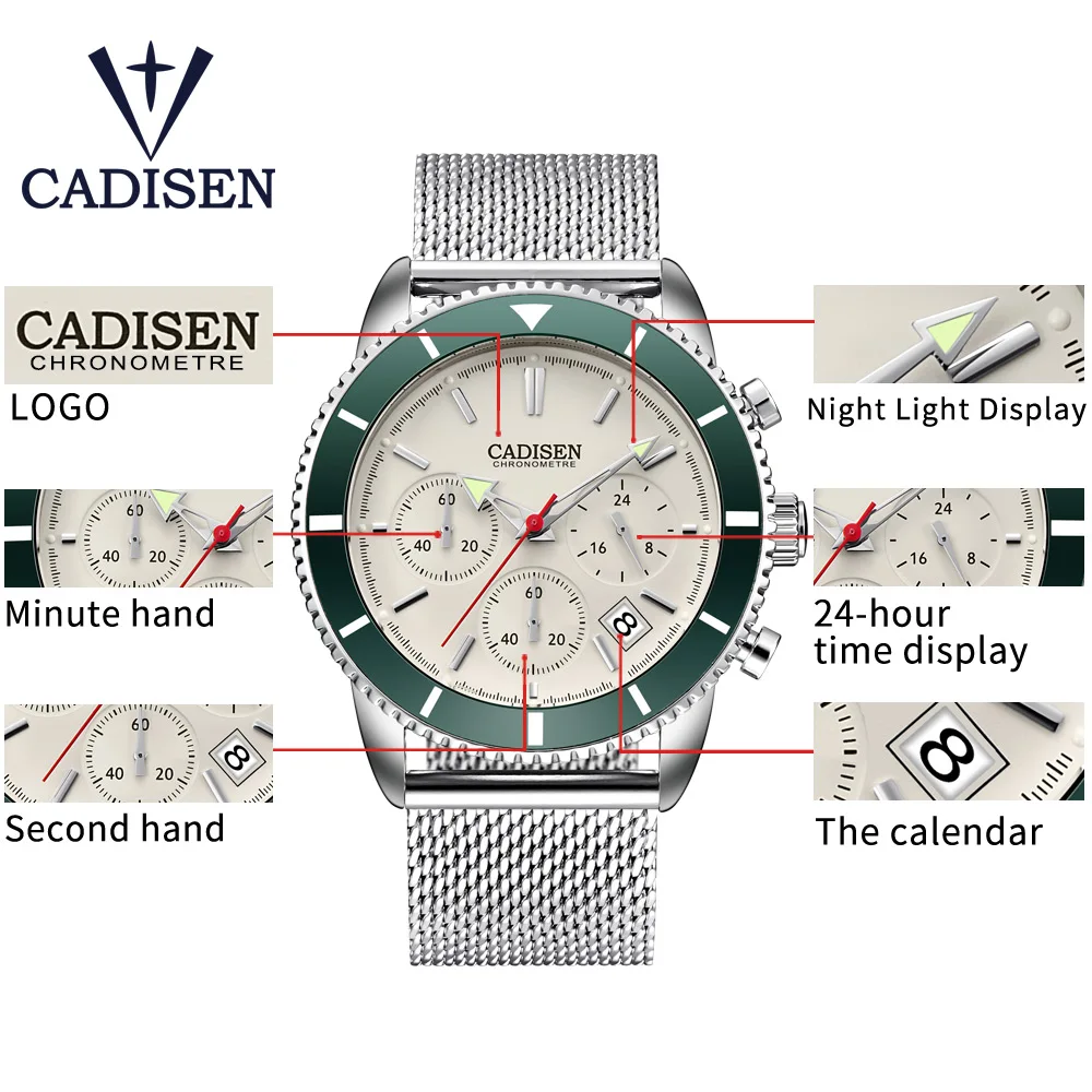 Cadisen Fashion Casual Watch Mens Watches Top Brand Luxury Waterproof Quartz Wristwatches Stainless Steel Watch Men Sports Clock