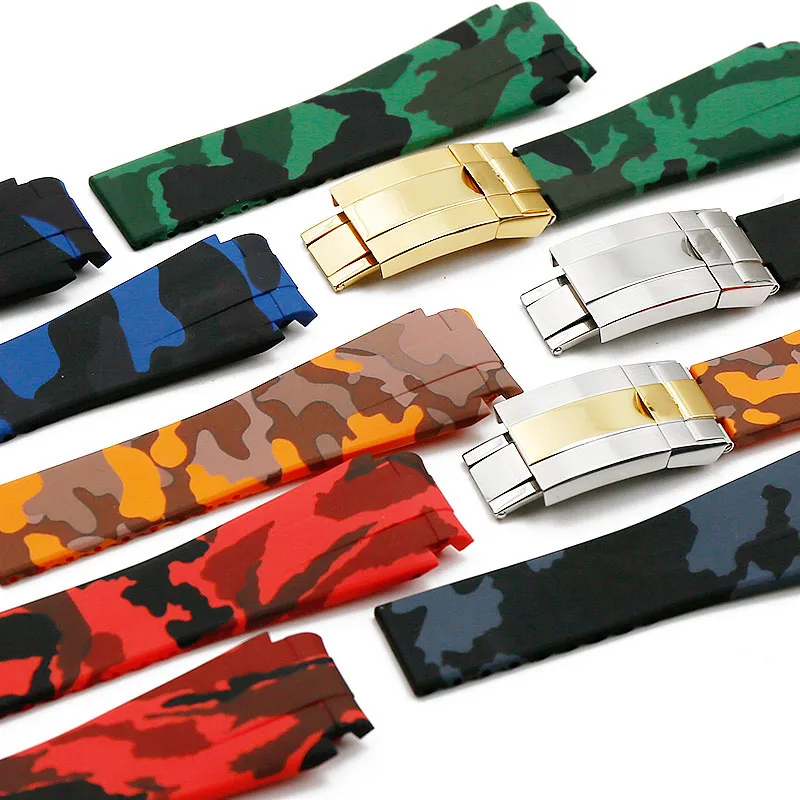 Rubber Strap Mens Camouflage Watch Accessories For Rolex Water Ghost Gmt Waterproof Silicone Strap Female 20Mm Men Watch Band