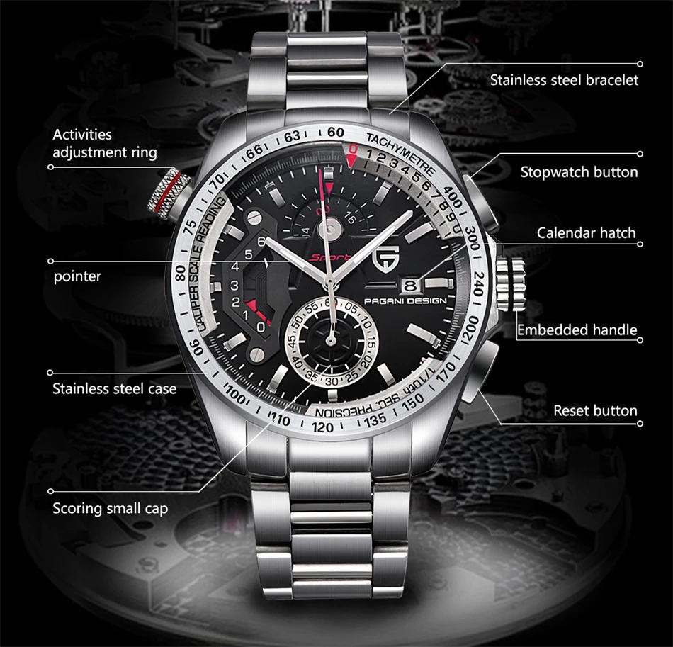 Pagani Design Full Stainless Steel Chronograph Sport Watches Luxury Brand Quartz Watch Dive Relogio Masculino Dropship