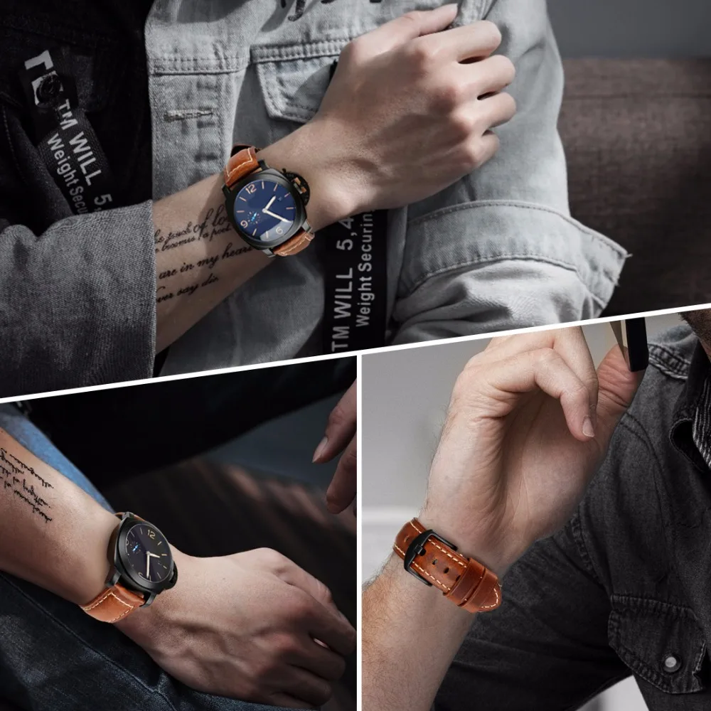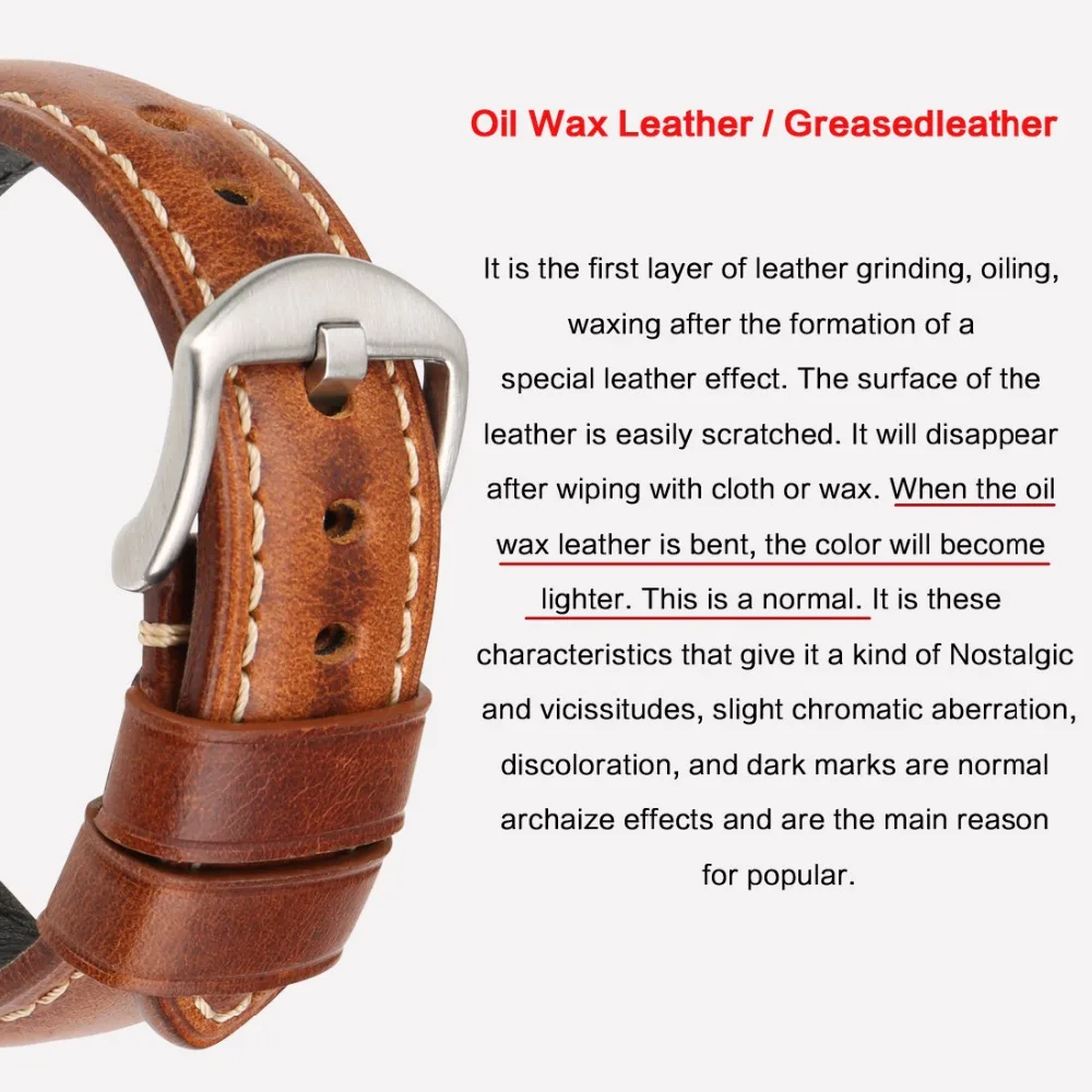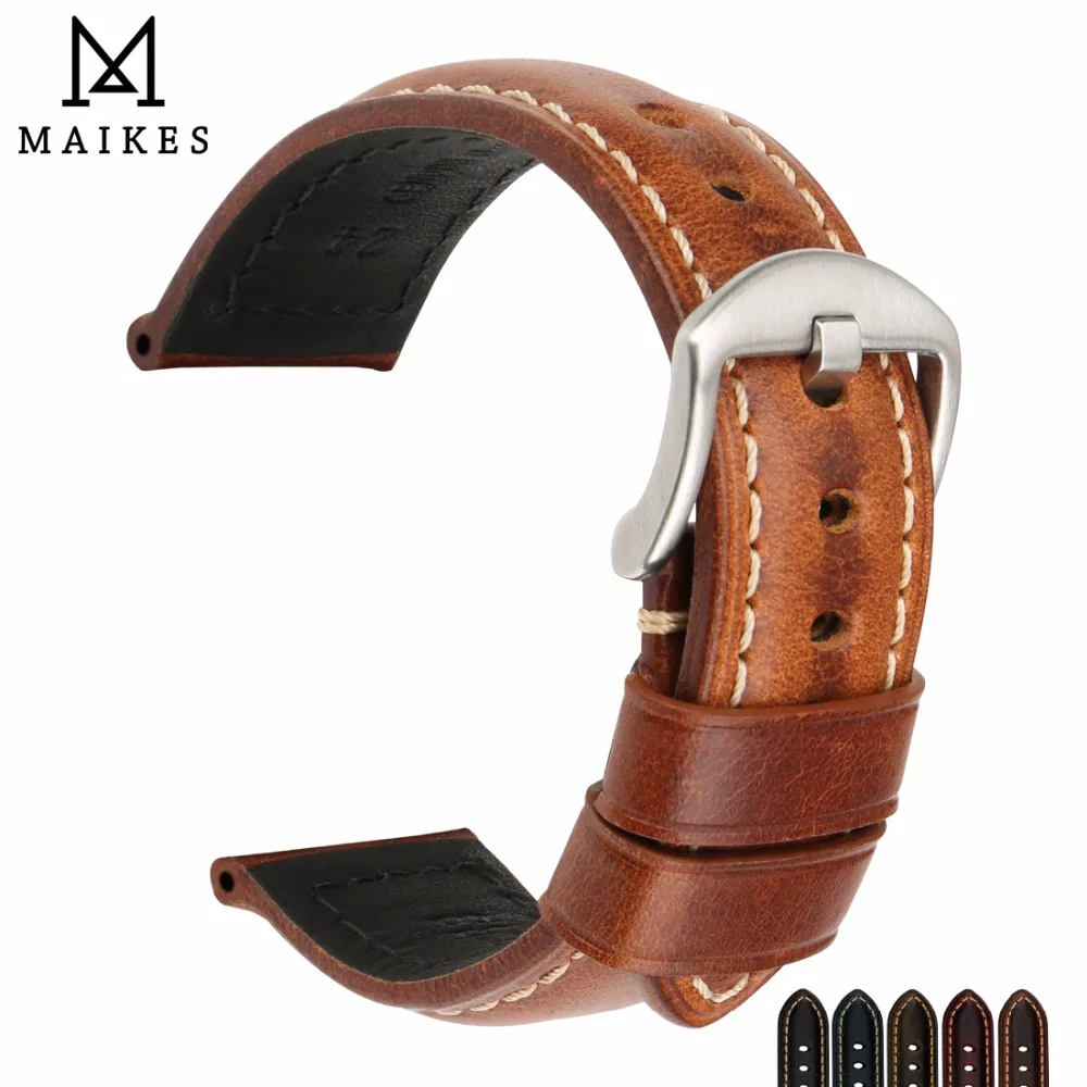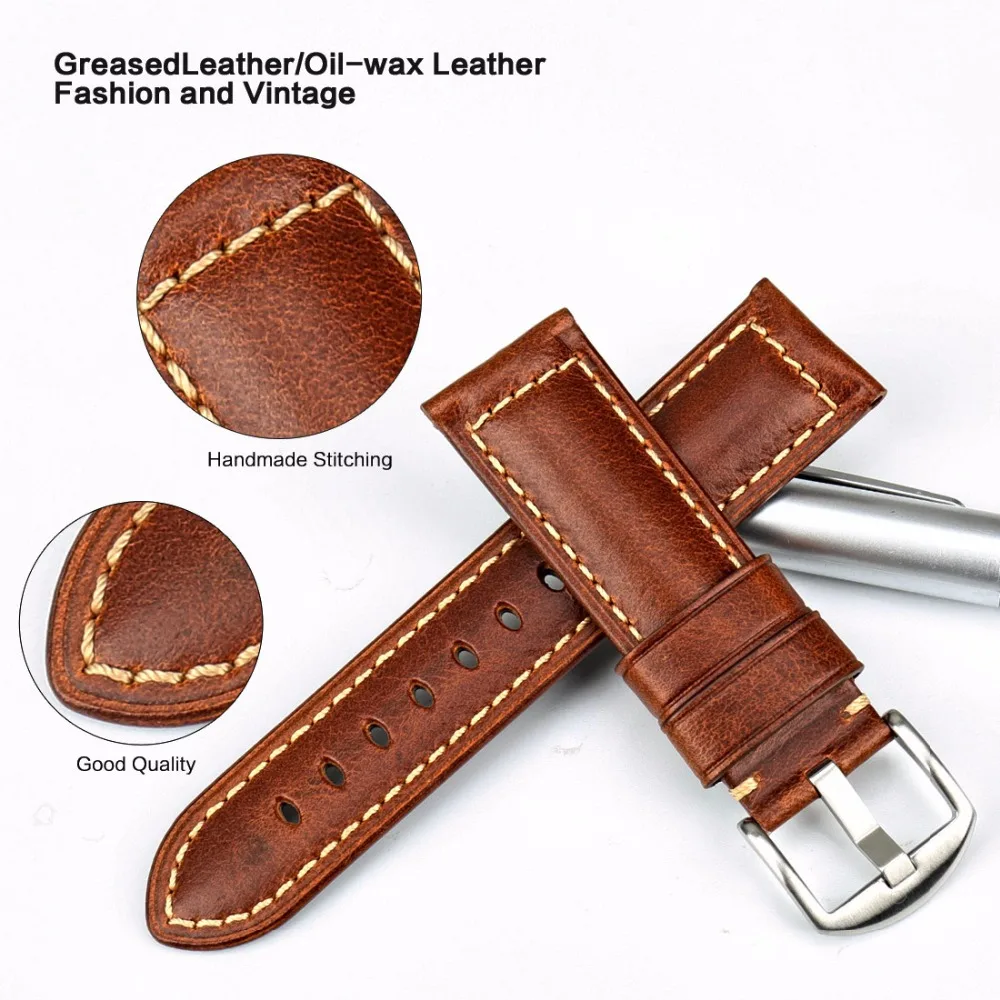 Maikes Watch Accessories Watchband Oil Wax Leather Watch Strap 20Mm 22Mm 24Mm Watch Band For Panerai Seiko Fossil Etc Brand