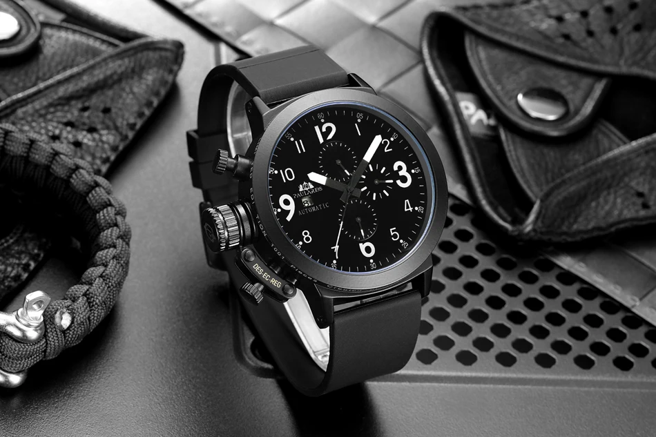 Cheap Offer Men Automatic Self Wind Mechanical Rubber Strap Black Silver Boat Case Orange Blue Yellow Grey Fash with FREE Worldwide Shipping!