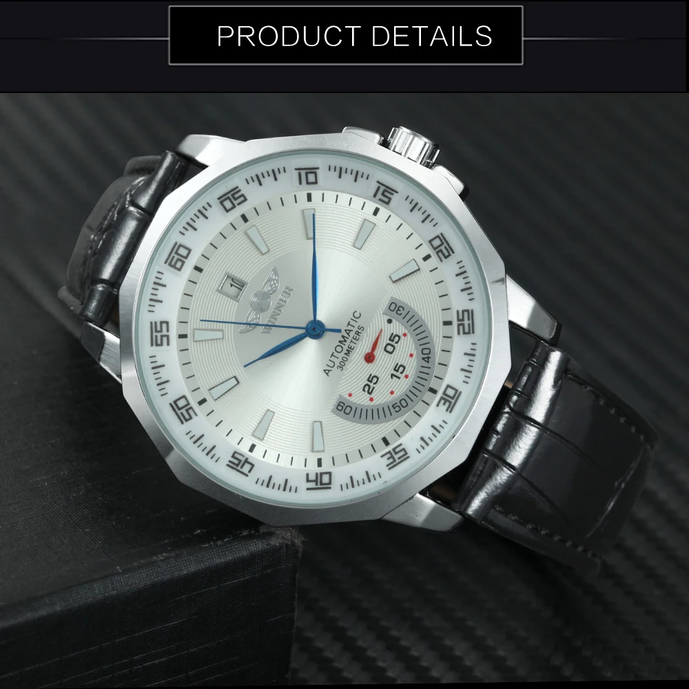 Winner Official Casual Mens Watches Top Brand Luxury Automatic Mechanical Watch Men Leather Band Calendar Fashion Wristwatch