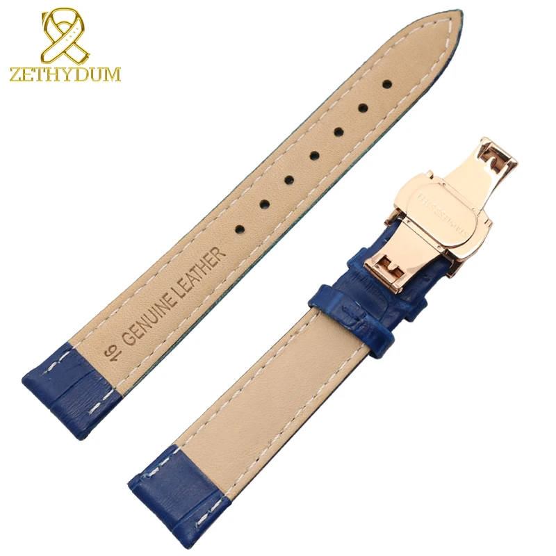 Genuine Leather Bracelet Dark Blue Color Watch Strap Butterfly Clasp Watchband Sized 22Mm 23Mm Watch Band
