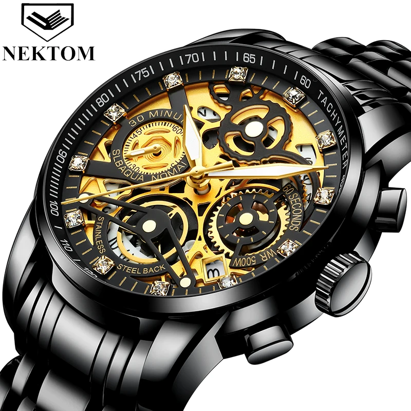 Special Price Nektom Relogio Masculino Wrist Watches Men Top Brand Luxury Golden Chronograph Men Watches Gol with FREE Shipping Worldwide!