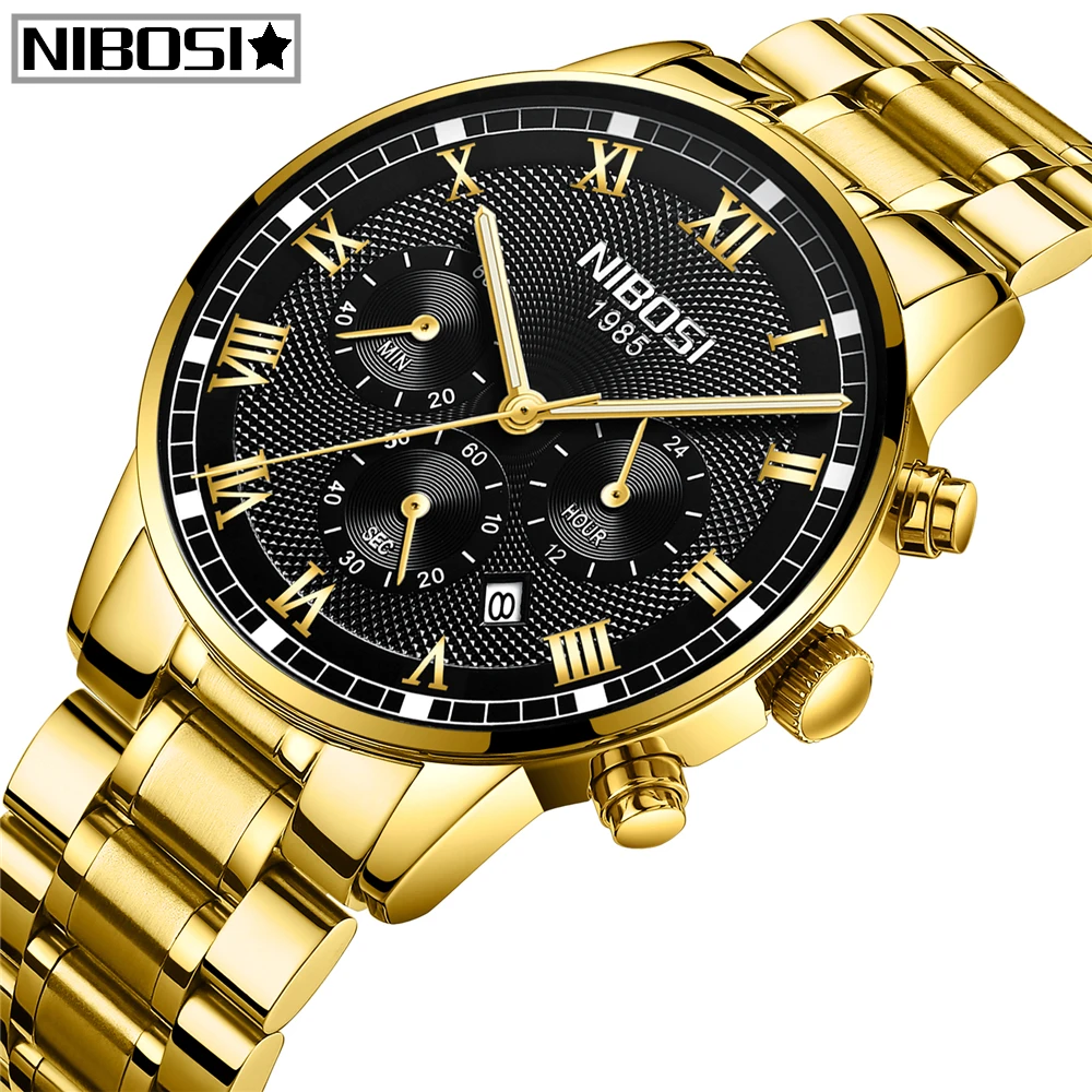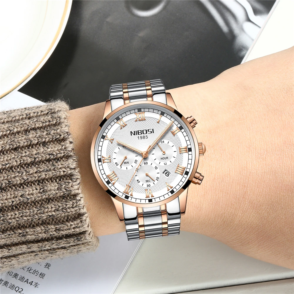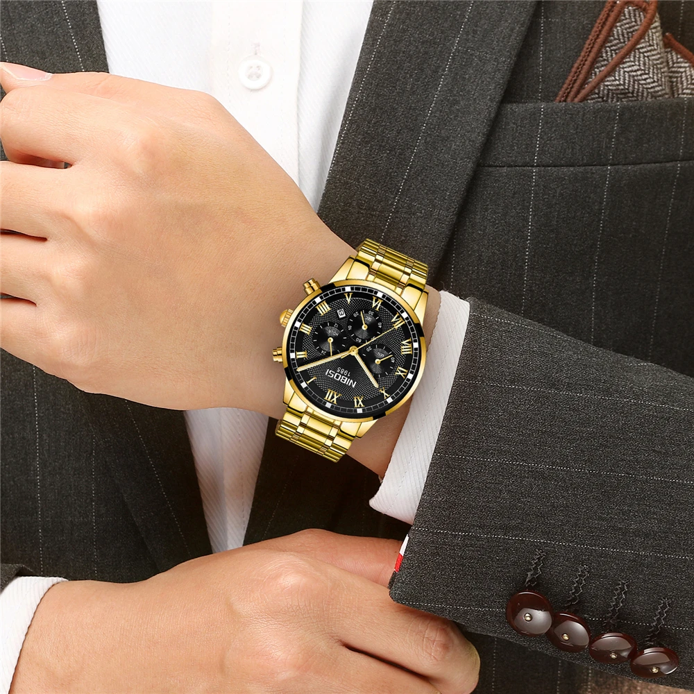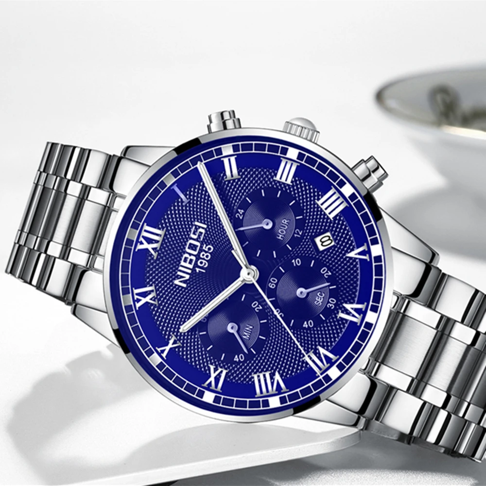 New Watches Relogio Masculino Men Luxury Brand Nibosi Chronograph Men Sports Watches Waterproof Full Steel Quartz Men Watch