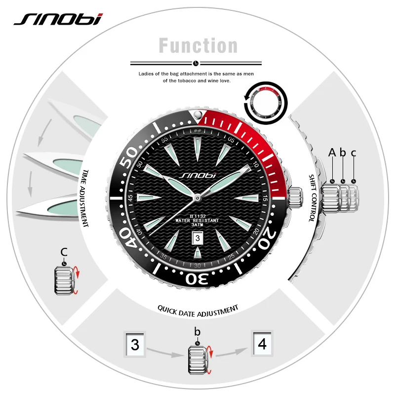 Sinobi 10Bar Waterproof Mens Diving Sports Wrist Watches Auto Date Top Luxury Brand Luminous Males Geneva Quartz Watch Clock