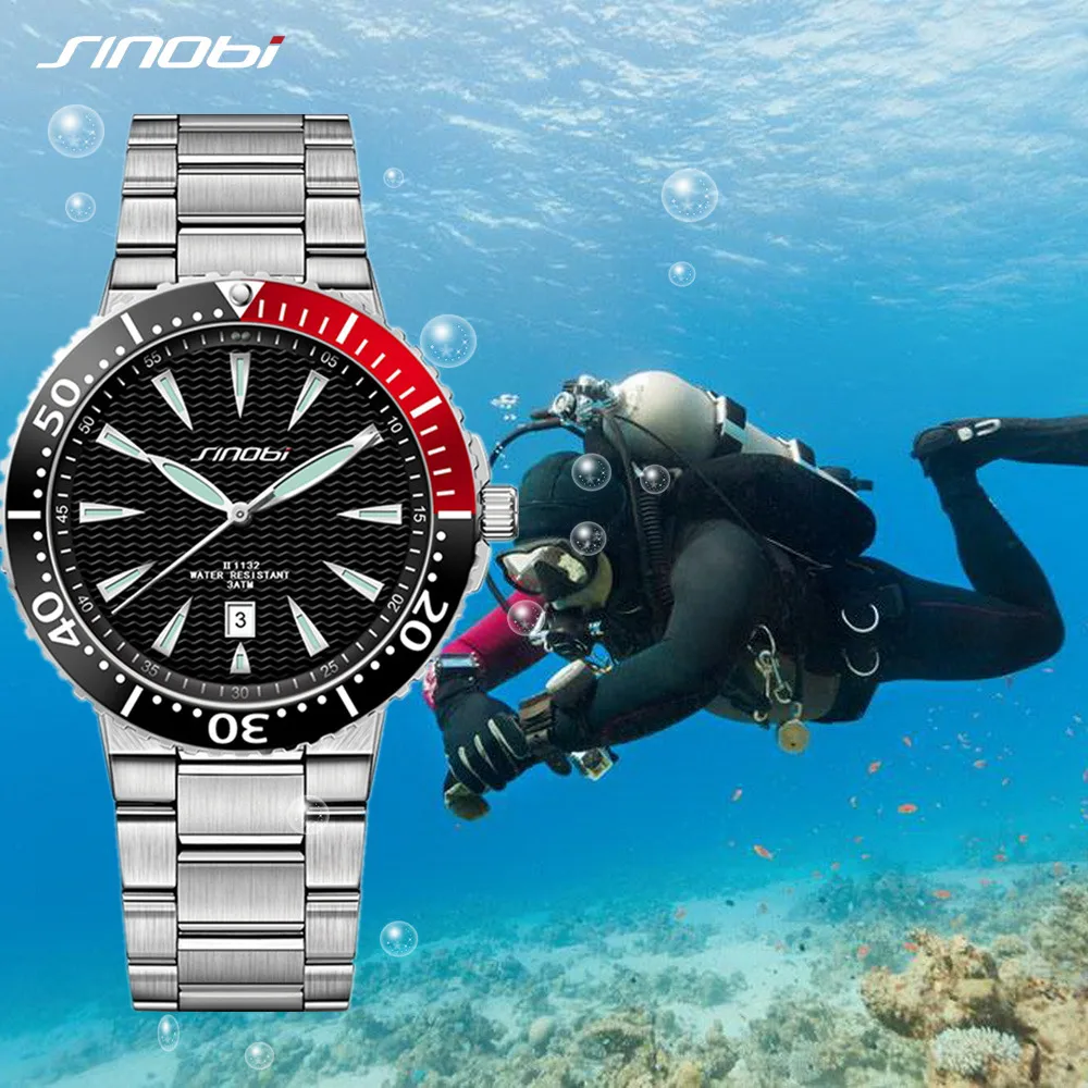 Cheap Price Sinobi Men Diving Wrist Watches Waterproof Steel Watchband Orisable Sports Geneva Rolexable Qua with Free Worldwide Shipping!